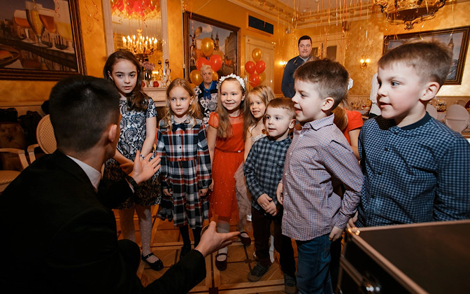 Яркая шоу-программа, динамичные номера и шуточные фокусы, в которых примут участие как дети, так и их родители, запомнятся надолго и вряд ли оставят гостей равнодушными. Именинника ожидают особый номер, который сделает из него настоящего героя вечера! Волшебные превращения и появления, неугомонный енот, световые трюки, вспышки, конфетти и многое другое - это то, что Сергей использует в данной программе.